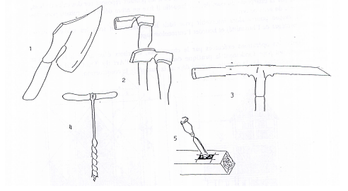 1- La doloire, grosse hache servant à équarrir les pièces de bois