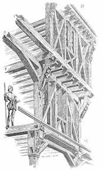 - Le charpentier établit l'épure, c'est-à-dire le dessin grandeur nature de la construction