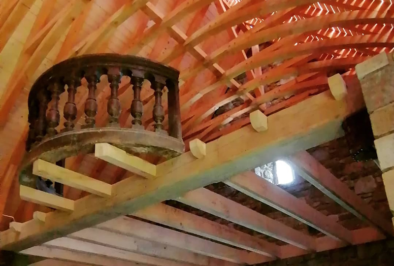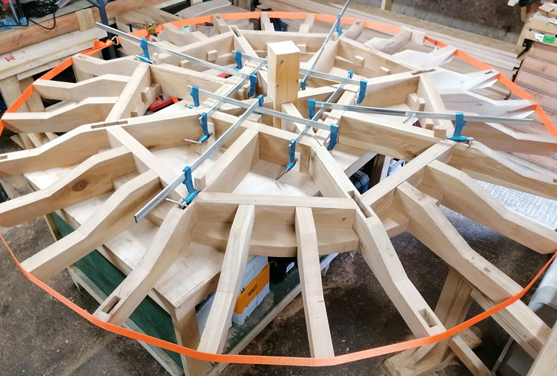 Charpente Chêne local - Diamètre 3.20m - Hauteur 5.5m - Assemblage traditionnel - Sur épure
