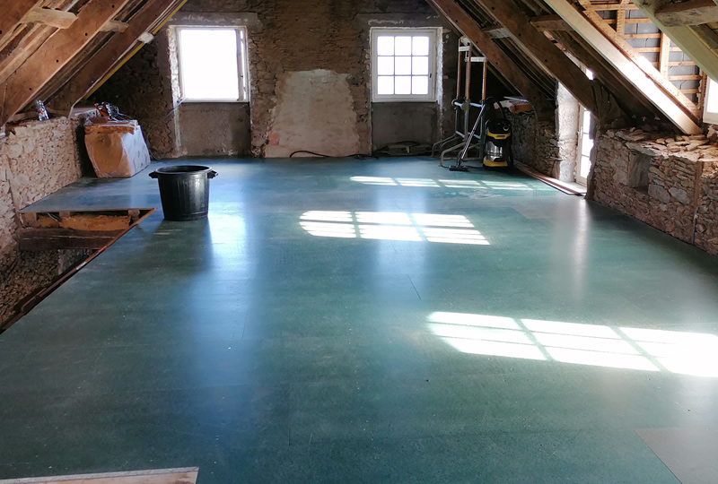 Chevron Chêne local - environ 70M - Faux niveau environ 15 cm - Isolation 80mm - Dalle durélis