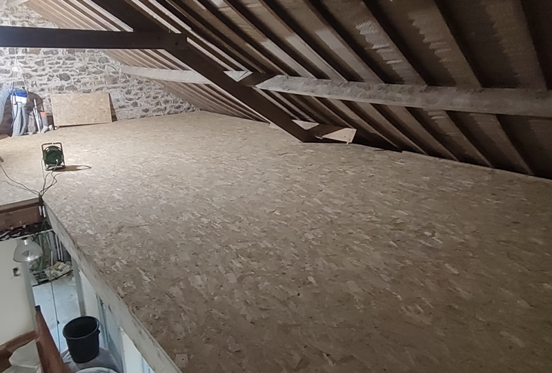 Solivage en 75x225 en solivette - Bande résiliante - Panneau osb3 en 22mm - Création d'une trémie