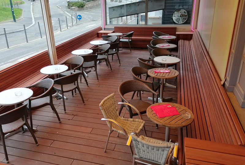 Terrasse de 66m² , structure en 70/200 CL4, création de banquette, création d'un escalier, lame en Mukulungu, visserie inox A4