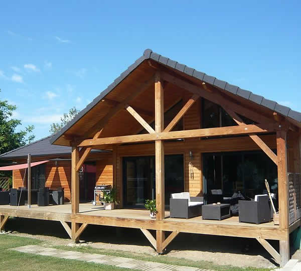 Esthétique : l'ossature porteuse reste totalement visible et constitue un élément de décoration intérieure. Espace intérieur : les poutres de grande portée offrent une volumétrie intérieure libre et généreuse. Liberté architecturale : la dissociation entre la structure et le remplissage autorise une grande variété de conception : grandes baies vitrée, murs maçonnés de briques, terre-paille...
